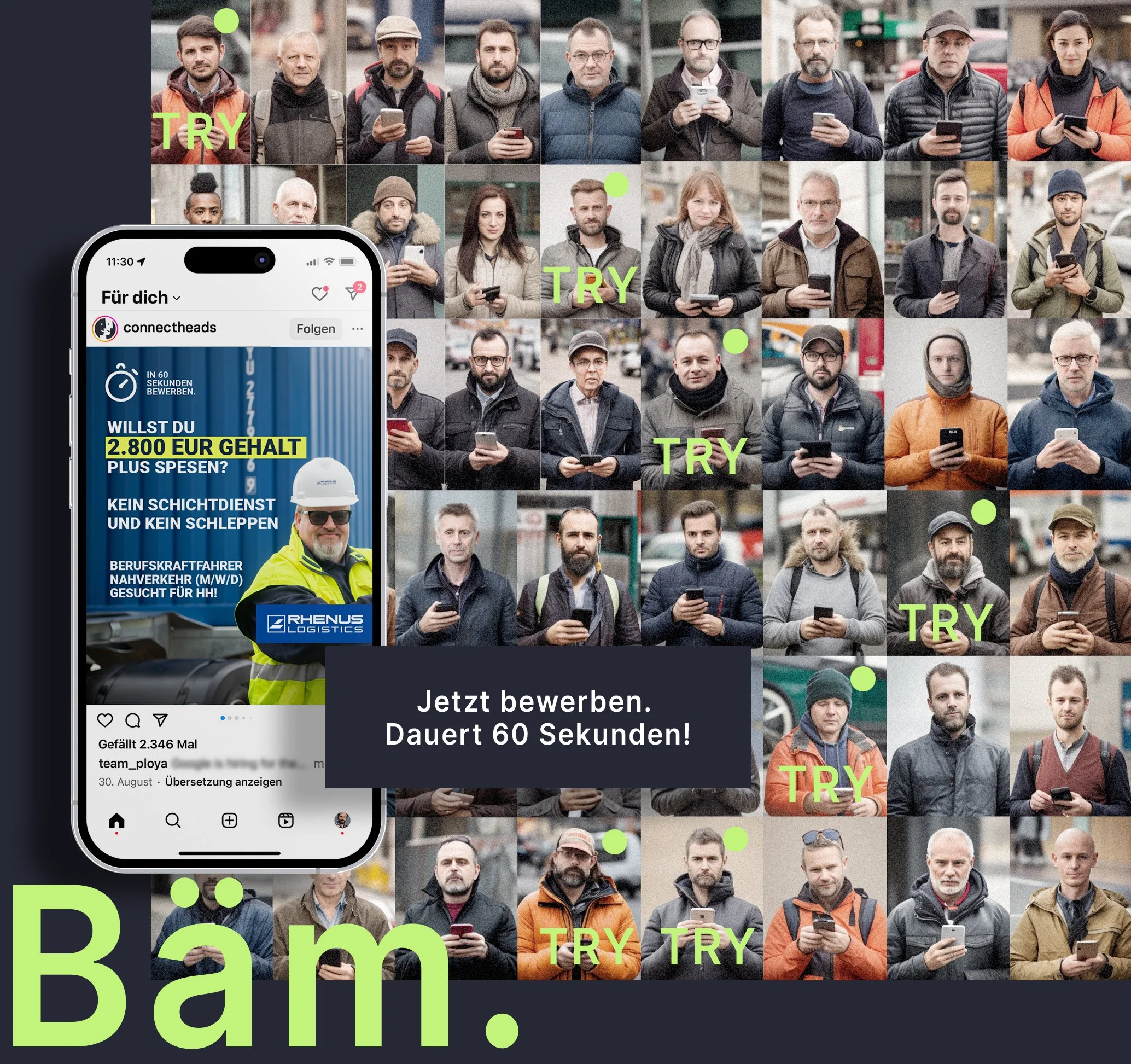 Ja, ein Stellenangebot muss vor allem inhaltlich den potenziellen Bewerber bzw. die Bewerberin überzeugen - allerdings entscheiden die ersten 3 Sekunden (beim Scrollen durch Instagram & Co. noch weniger), ob das Auge hängen bleibt, ob der erste Eindruck so interessant und aufmerksamkeitsstark ist, dass man in Inhalte überhaupt einsteigt. Wir “feilen” an diesem ersten Eindruck, testen z.T. Varianten hinsichtlich Sprache, Botschaften, Struktur oder Bildwelt und optimieren, wann immer notwendig.